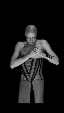 Una figura androgina che porta con se il suo personale bagaglio artistico ( teatro, danza, canto e arti circensi ).